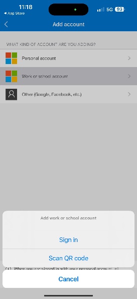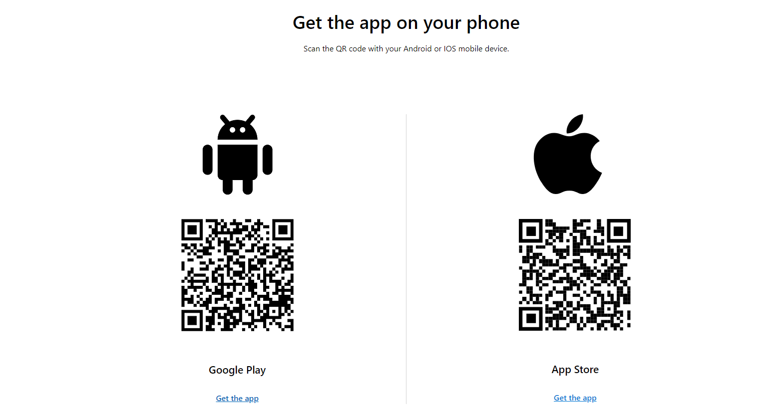 You will need to install the Microsoft Authenticator App before being able to proceed, you can scan these QR codes with your phone below (obtained through Microsoft’s website) so it can direct you to the App Store/Google Play to download the app.